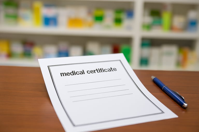 Assessment: A pharmacist assessment is required before issuing the certificate.